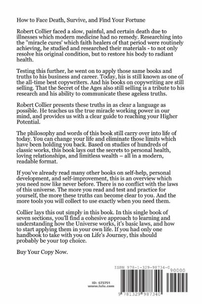 How to Face Death, Survive, and Find Your Fortune Robert Collier faced a slow, painful, and certain death due to illnesses which modern medicine had no remedy. Researching into the "miracle cures' which faith healers of that period were routinely achieving, he studied and researched their materials - to not only resolve his original condition, but to restore his body to radiant health. Testing this further, he went on to apply those same books and truths to his business and career. Today, his is still known as one of the all-time best copywriters. And his books on copywriting are still selling. That the Secret of the Ages also still selling is a tribute to his research and his ability to communicate these ageless truths. Robert Collier presents these truths in as clear a language as possible. He teaches us the true miracle working power in our mind, and provides us with a clear guide to reaching your Higher Potential - all in a modern, readable format. Get Your Copy Now.