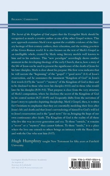 This book emphasizes the literary creativity of the Evangelist Mark by detailing his use and imitation of literary materials well-known to him and to his first-century audience. All this was in service of what constitutes the "secret of the Kingdom of God," that is, authentic Christian discipleship.