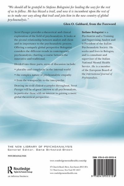 Secret Passages provides a theoretical and clinical exploration of the field of psychoanalysis. It looks at the pivotal relationship between analyst and client and its importance to the psychoanalytic process. Offering a uniquely global perspective, Bolognini considers the different trends in contemporary psychoanalysis, charting a course between the innovative and traditional. Divided into three parts, areas of discussion include: plurality and complexity in the internal world the complex nature of psychoanalytic empathy from the transpsychic to the interpsychic. Drawing on vivid clinical examples throughout, Secret Passages will be of great interest to all psychoanalysts, in particular those with an interest in gaining a more global theoretical perspective.