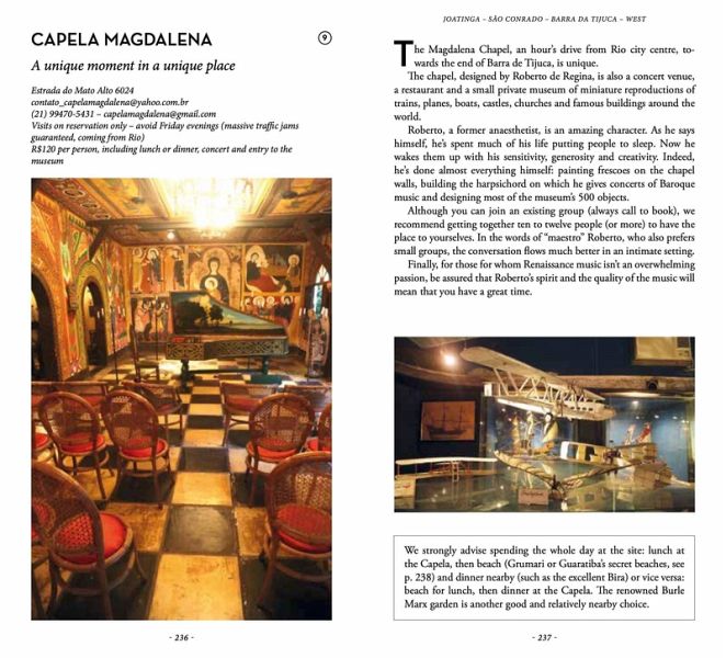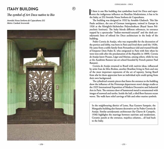 Visit an extraordinary hill where the "little angels" are buried; discover remarkable forgotten Art Deco buildings; see a plane taking off at really close range, leftovers from the 1908 and 1922 Universal Expositions, a beautiful private palace open to visitors once a month, modernist ceramics hidden on the 15th-floor terrace of a former government building, a remarkable secret staircase; experience little-known walks and views of the city; find an Amazonian talisman at Copacabana, vestiges of the Carioca river, a rare statue of the great-grandmother of Jesus, a taxi nightclub, a work of art in a favela, a disused airship hangar... Far from the crowds and the usual beach and carnival clichés, Rio de Janeiro has countless treasures it reveals only to residents and travelers who wander off the beaten track. An indispensable guide for all those who thought they were familiar with Rio or would like to discover the other face of the city.