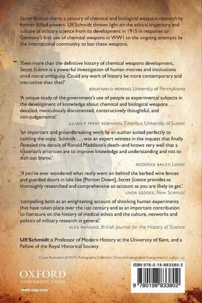 From the early 1990s, allegations that servicemen had been duped into taking part in trials with toxic agents at top-secret Allied research facilities throughout the twentieth century featured with ever greater frequency in the media. In Britain, a whole army of over 21,000 soldiers had participated in secret experiments between 1939 and 1989. Some remembered their stay as harmless, but there were many for whom the experience had been all but pleasant, sometimes harmful, and in isolated cases deadly. Secret Science traces, for the first time, the history of chemical and biological weapons research by the former Allied powers, particularly in Britain, the United States, and Canada. It charts the ethical trajectory and culture of military science, from its initial development in response to Germany's first use of chemical weapons in the First World War to the ongoing attempts by the international community to ban these types of weapons once and for all. It asks whether Allied and especially British warfare trials were ethical, safe, and justified within the prevailing conditions and values of the time. By doing so, it helps to explain the complex dynamics in top-secret Allied research establishments: the desire and ability of the chemical and biological warfare corps, largely comprised of military officials, scientists, and expert civil servants, to construct and identify a never-ending stream of national security threats which served as flexible justification strategies for the allocation of enormous resources to conducting experimental research with some of the most deadly agents known to man. Secret Science offers a nuanced, non-judgemental analysis of the contributions made by servicemen, scientists, and civil servants to military research in Britain and elsewhere, not as passive, helpless victims 'without voices', or as laboratory and desk perpetrators 'without a conscience', but as history's actors and agents of their own destiny. As such it also makes an important contribution to the burgeoning literature on the history and culture of memory.