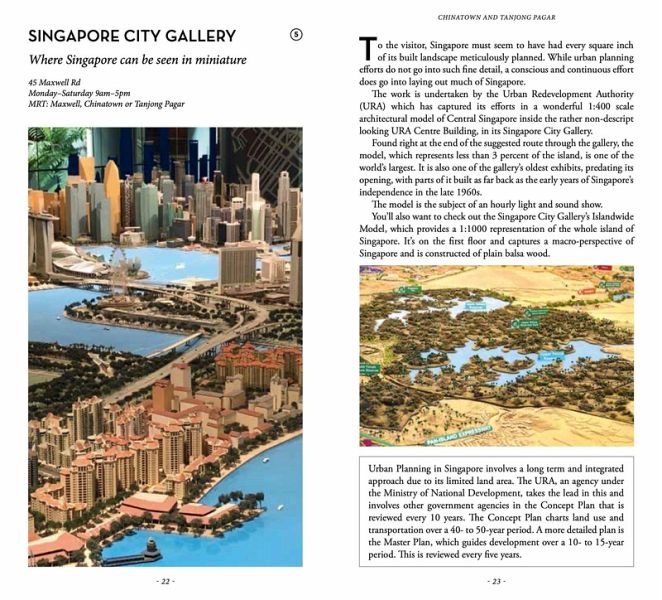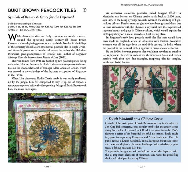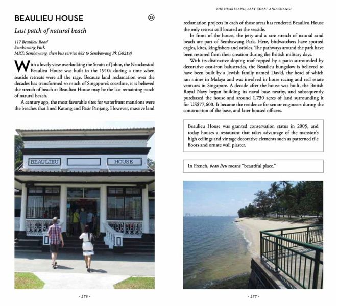 A lighthouse on the top of a 25-storey apartment block, a unique rocky area that looks like Guilin in China, the remains of a Shinto shrine built in the jungle by prisoners of war, houses from the Ming and Qing periods donated by Jackie Chan, the bottoms of soya-sauce bottles used to decorate the Sultan Mosque, the “leaning tower” of Singapore, the last remaining stretch of natural beach, a forgotten bomb shelter under a national monument, the beautiful modernist door of a former biscuit factory, a hidden kampong (rural village) dwarfed by residential towers, the splendidly preserved old Changi prison gates, the stately Masons Hall inside the Freemasons' headquarters …