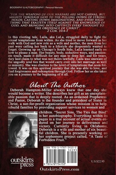 "For the weapons of our warfare are not carnal, but mighty through God to the pulling down of strong holds; Casting down imaginations, and every high thing that exalteth itself against the knowledge of God, and bringing into captivity every thought to the obedience of Christ" II Corinthians 10:4-5. In this riveting tale, Laila, aka LaLa, struggled daily to fight the sexual temptations from within. As she tried to move forward in her walk with God and new role as a wife and mother, the men from her past were calling her back to a lifestyle she desperately wanted to forget. Growing up on Chicago's South Side, LaLa learned early on how to please a man. Her beauty, body, seductive ways, and passionate touch, made it difficult for any man to deny her; and for years, they laid claim to what was not theirs lawfully. Laila was unaware of the ungodly soul ties that would carry over into her marriage as well as ministry. She was clueless to the level of temptations that soon followed. It was on this spiritual journey that she was able to love, and find forgiveness and redemption through God. Follow her as she takes you on a journey to the beginning of it all.