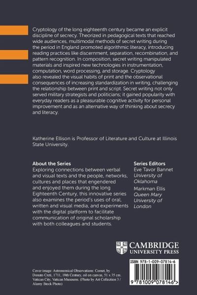 Cryptology of the long eighteenth century became an explicit discipline of secrecy. Theorized in pedagogical texts that reached wide audiences, multimodal methods of secret writing during the period in England promoted algorithmic literacy, introducing reading practices like discernment, separation, recombination, and pattern recognition.