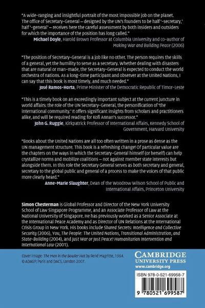 The Secretary-General of the United Nations is a unique figure in world politics. At once civil servant, the world's diplomat, lackey of the UN Security Council, and commander-in-chief of up to a hundred thousand peacekeepers, he or she depends on states for both the legitimacy and resources that enable the United Nations to function. The tension between these roles - of being secretary or general - has challenged every incumbent. This book brings together the insights of senior UN staff, diplomats and scholars to examine the normative and political factors that shape this unique office with particular emphasis on how it has evolved in response to changing circumstances such as globalization and the onset of the 'war on terror'. The difficulties experienced by each Secretary-General reflect the profound ambivalence of states towards entrusting their security, interests or resources to an intergovernmental body.