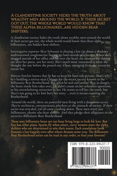 A clandestine society hides the truth about wealthy men around the world. If their secret got out, the whole world would know that these alpha billionaires…are hidden bear shifters. Investigative reporter Skye Sylvester is chasing a hot tip about a shadowy multinational conglomerate buying up land outside of Chicago. When she's mugged outside of her office and hit over the head, she assumes the thieves are after her purse, not her story. She's much more interested in what she thought she saw before she passed out: a bear, emerging from the streets to rescue her. Marcus Sinclair knows that he has to keep his bear side private. That's why he's building a retreat near Chicago for the secret society known as the Billionaire Bear Brotherhood. But when he sees curvaceous Skye in danger, the beast inside him takes over. He didn't count on her relentless questions, or his overwhelming attraction to her. He wants to tell her the truth, but Skye's not going to let him bury her story … even it means exposing the Brotherhood. Around the world, there are powerful men living with a dangerous secret. They're architects, entrepreneurs, playboys at the pinnacle of society. If their secret was revealed, it'd all come crashing down. These men aren't just billionaires, they're also bear shifters. And they pledge their allegiance to the secretive Billionaire Bear Brotherhood. These sexy billionaire bears are too busy living large to look for love. But fate has other plans. Sparks fly when smart, curvy women meet the alpha shifters who are determined to win their mates. Each standalone book features a hot happily-ever-after where dreams come true. The Billionaire Bear Brotherhood series can be read in any order, so find your favorite!
