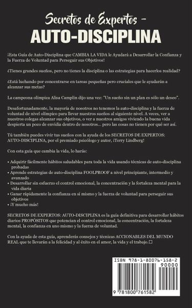 ¡Esta Guía de Auto-Disciplina que CAMBIA LA VIDA le Ayudará a Desarrollar la Confianza y la Fuerza de Voluntad para Perseguir sus Objetivos! ¿Tienes grandes sueños, pero no tienes la disciplina o las estrategias para hacerlos realidad? ¿Está luchando por concentrarse en tareas pequeñas pero cruciales que le ayudarán a alcanzar sus metas? La campeona olímpica Alisa Camplin dijo una vez: "Un sueño sin un plan es sólo un deseo". Desafortunadamente, la mayoría de nosotros no tenemos la auto-disciplina y la fuerza de voluntad de nivel olímpico para llevar nuestros sueños al siguiente nivel. A veces, ver a nuestros colegas alcanzar sus objetivos, o ver a nuestros amigos viviendo la buena vida despierta un poco de envidia dentro de nosotros... pero las cosas no tienen por qué ser así. Tú también puedes vivir tus sueños con la ayuda de los SECRETOS DE EXPERTOS: AUTO-DISCIPLINA, por el premiado psicólogo y autor, ¡Terry Lindberg! Con esta guía que cambia la vida, lo harás:Adquirir fácilmente hábitos saludables para toda la vida usando técnicas de auto-disciplina probadas Aprende estrategias de auto-disciplina FOOLPROOF a nivel principiante, intermedio y avanzado Desarrollar sin esfuerzo el control emocional, la concentración y la fortaleza mental para la vida diaria Ganar rápidamente la confianza en sí mismo y la fuerza de voluntad para perseguir sus objetivos ¡Y mucho más! SECRETOS DE EXPERTOS: AUTO-DISCIPLINA es la guía definitiva para desarrollar hábitos diarios PROPÓSITOS que potencian el control emocional, la concentración, la fortaleza mental, la confianza en uno mismo y la fuerza de voluntad. Con la ayuda de esta guía, aprenderás consejos y técnicas ACCIONABLES DEL MUNDO REAL que te llevarán a la felicidad y al éxito en el amor, la vida y el trabajo. ¡Tus sueños están a sólo un pelo de distancia! ¡Desplácese hacia arriba, haga clic en "Comprar Ahora", ¡y Empiece