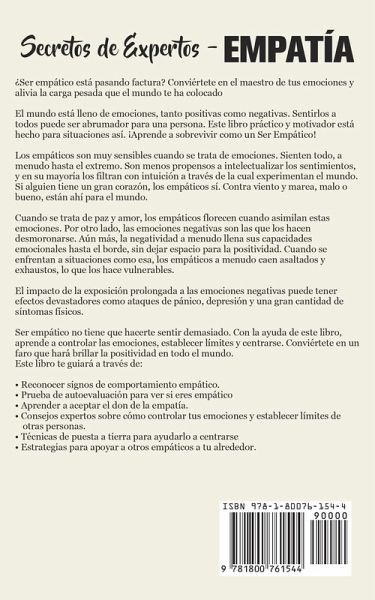 ¿Ser empático está pasando factura? Conviértete en el maestro de tus emociones y alivia la carga pesada que el mundo te ha colocado El mundo está lleno de emociones, tanto positivas como negativas. Sentirlos a todos puede ser abrumador para una persona. Este libro práctico y motivador está hecho para situaciones así. ¡Aprende a sobrevivir como un Ser Empático! Los empáticos son muy sensibles cuando se trata de emociones. Sienten todo, a menudo hasta el extremo. Son menos propensos a intelectualizar los sentimientos, y en su mayoría los filtran con intuición a través de la cual experimentan el mundo. Si alguien tiene un gran corazón, los empáticos sí. Contra viento y marea, malo o bueno, están ahí para el mundo. Cuando se trata de paz y amor, los empáticos florecen cuando asimilan estas emociones. Por otro lado, las emociones negativas son las que los hacen desmoronarse. Aún más, la negatividad a menudo llena sus capacidades emocionales hasta el borde, sin dejar espacio para la positividad. Cuando se enfrentan a situaciones como esa, los empáticos a menudo caen asaltados y exhaustos, lo que los hace vulnerables. El impacto de la exposición prolongada a las emociones negativas puede tener efectos devastadores como ataques de pánico, depresión y una gran cantidad de síntomas físicos. Ser empático no tiene que hacerte sentir demasiado. Con la ayuda de este libro, aprende a controlar las emociones, establecer límites y centrarse. Conviértete en un faro que hará brillar la positividad en todo el mundo. Este libro te guiará a través de:Reconocer signos de comportamiento empático. Prueba de autoevaluación para ver si eres empático Aprender a aceptar el don de la empatía. Consejos expertos sobre cómo controlar tus emociones y establecer límites de otras personas. Técnicas de puesta a tierra para ayudarlo a centrarse Estrategias para apoyar a otros empáticos a tu alrededor. Conviértete en un faro de luz y una persona feliz que mereces ser. Deje que este libro lo guíe a través del proceso de aprender a tener el control total de sus emociones. Comienza ahora, toma la guía, ¡porque tu felicidad está ahí esperándote! Desplázate hacia arriba, haz clic en "Comprar Ahora" y comienza a leer.