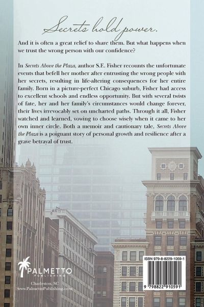 In Secrets Above the Plaza, author S.E. Fisher recounts the unfortunate events that befell her mother after trusting the wrong people with her secrets, resulting in life-altering consequences for her entire family. Born in a picture-perfect Chicago suburb, Fisher had access to excellent schools and endless opportunity. But with several twists of fate, her and her family's circumstances would change forever, their lives irrevocably set on uncharted paths. Through it all, Fisher watched and learned, vowing to choose wisely when it came to her own inner circle. Both a memoir and cautionary tale, Secrets Above the Plaza is a poignant story of personal growth and resilience after a grave betrayal of trust.