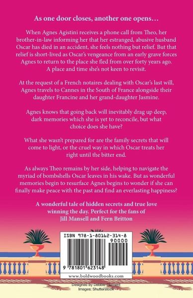 Preorder a beautiful sunny, getaway read from bestselling author Jennifer Bohnet As one door closes, another one opens... When Agnes Agistini receives a phone call from Theo, her brother-in-law informing her that her estranged, abusive husband Oscar has died in an accident, she feels nothing but relief. But that relief is short-lived as Oscar's vengeance from an early grave forces Agnes to return to the place she fled from over forty years ago. A place and time she's not keen to revisit. At the request of a French notaires dealing with Oscar's last will, Agnes travels to Cannes in the South of France alongside their daughter Francine and her grand-daughter Jasmine. Agnes knows that going back will inevitably drag up deep, dark memories which she is yet to reconcile, but what choice does she have? What she wasn't prepared for are the family secrets that will come to light, or the cruel way in which Oscar treats her right until the bitter end. As always Theo remains by her side, helping to navigate the myriad of bombshells Oscar leaves in his wake. But as wonderful memories begin to resurface Agnes begins to wonder if she can finally make peace with the past and find an everlasting happiness? An wonderful tale of hidden secrets and true love winning the day. Perfect for the fans of Jill Mansell and Fern Britton. Praise for Jennifer Bohnet: 'Unputdownable, a heart-warming story of love, family and friendship in the glorious south of France. What's not to love!' - Lucy Coleman 'I couldn't stop myself from turning the pages and read it in one sitting. I absolutely loved it. Highly recommended!' - Alison Sherlock A beautifully written and heart-warming tale of family and friendship' - Jessica Redland 'There is much joy in this story, tempered with some bittersweet memories, but I can promise that you'll be left feeling both joyous and uplifted. Highly recommended.' - Reader Review 'No surprises here. Just two sweet romances in a dream-come-true story. Not soppy sweet, just charmingly so. Perfect for a rainy day on the couch or a sunny day on a patio.' - Reader Review 'I absolutely love Jennifer's stories, the characters and storyline's are superb and she always leaves us wanting more.' - Reader Review ' I couldn't put it down it's definitely a page turner.' - Reader Review 'What a lovely, happy story. Full of the ups and downs of life, but with a happy ending full of love and promise . Thank you.' - Reader Review