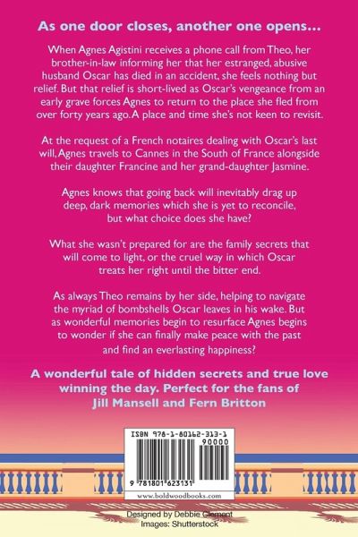 Preorder a beautiful sunny, getaway read from bestselling author Jennifer Bohnet As one door closes, another one opens... When Agnes Agistini receives a phone call from Theo, her brother-in-law informing her that her estranged, abusive husband Oscar has died in an accident, she feels nothing but relief. But that relief is short-lived as Oscar's vengeance from an early grave forces Agnes to return to the place she fled from over forty years ago. A place and time she's not keen to revisit. At the request of a French notaires dealing with Oscar's last will, Agnes travels to Cannes in the South of France alongside their daughter Francine and her grand-daughter Jasmine. Agnes knows that going back will inevitably drag up deep, dark memories which she is yet to reconcile, but what choice does she have? What she wasn't prepared for are the family secrets that will come to light, or the cruel way in which Oscar treats her right until the bitter end. As always Theo remains by her side, helping to navigate the myriad of bombshells Oscar leaves in his wake. But as wonderful memories begin to resurface Agnes begins to wonder if she can finally make peace with the past and find an everlasting happiness? An wonderful tale of hidden secrets and true love winning the day. Perfect for the fans of Jill Mansell and Fern Britton. Praise for Jennifer Bohnet: 'Unputdownable, a heart-warming story of love, family and friendship in the glorious south of France. What's not to love!' - Lucy Coleman 'I couldn't stop myself from turning the pages and read it in one sitting. I absolutely loved it. Highly recommended!' - Alison Sherlock A beautifully written and heart-warming tale of family and friendship' - Jessica Redland 'There is much joy in this story, tempered with some bittersweet memories, but I can promise that you'll be left feeling both joyous and uplifted. Highly recommended.' - Reader Review 'No surprises here. Just two sweet romances in a dream-come-true story. Not soppy sweet, just charmingly so. Perfect for a rainy day on the couch or a sunny day on a patio.' - Reader Review 'I absolutely love Jennifer's stories, the characters and storyline's are superb and she always leaves us wanting more.' - Reader Review ' I couldn't put it down it's definitely a page turner.' - Reader Review 'What a lovely, happy story. Full of the ups and downs of life, but with a happy ending full of love and promise . Thank you.' - Reader Review