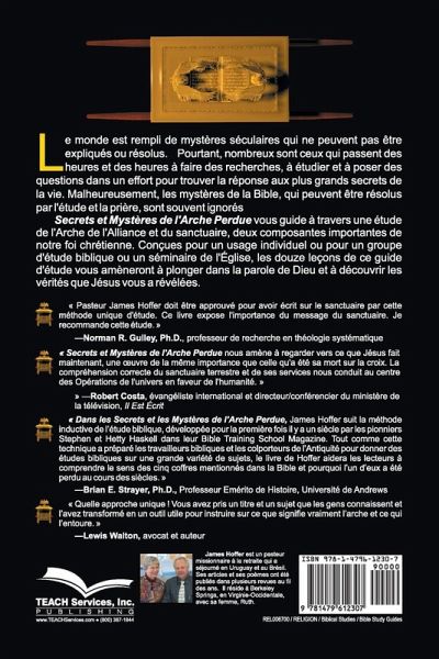 Le monde est rempli de mystères séculaires qui ne peuvent pas être expliqués ou résolus. Pourtant, nombreux sont ceux qui passent des heures et des heures à faire des recherches, à étudier et à poser des questions dans un effort pour trouver la réponse aux plus grands secrets de la vie. Malheureusement, les mystères de la Bible, qui peuvent être résolus par l’étude et la prière, sont souvent ignorés. Secrets et Mystères de l’Arche Perdue vous guide à travers une étude de l’Arche de l’Alliance et du sanctuaire, deux composantes importantes de notre foi chrétienne. Conçues pour un usage individuel ou pour un groupe d’étude biblique ou un séminaire de l’Église, les douze leçons de ce guide d’étude vous amèneront à plonger dans la parole de Dieu et à découvrir les vérités que Jésus vous a révélées.