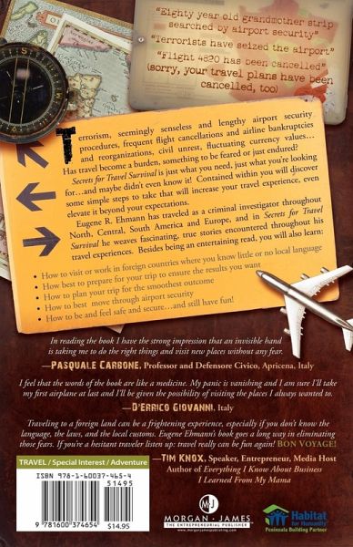 "Terrorists have seized the airport" "Eighty year old grandmother strip searched by airport security" "Flight 4820 has been cancelled" (sorry, your travel plans have been cancelled, too) "Frontier Airlines has declared bankruptcy ... Delta and Northwest are merging" "Venezuela's President Chavez nationalizes the oil industry" "Murder in the streets of Nairobi" "U.S. Dollar takes another dip in the world market" Terrorism, seemingly senseless and lengthy airport security procedures, frequent flight cancellations and airline bankruptcies and reorganizations, civil unrest, fluctuating currency values ... Has travel become a burden, fearful or something to just be endured? Secrets for Travel Survival is just what you need, just what you're looking for…and maybe didn't even know it! Contained within you will discover some simple steps to take that will increase your travel experience, even elevate it beyond your expectations.