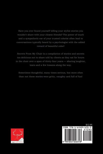 Have you ever found yourself telling your stylist stories you wouldn't share with your closest friends? The power of touch and a sympathetic ear of your trusted colorist often lead to conversations typically heard by a psychologist with the added reward of beautiful color! Secrets From My Chair is a compilation of stories and secrets too delicious not to share told by clients as they sat for hours in the chair over a span of thirty-four years~ sharing laughter, tears and a few lessons along the way. Sometimes thoughtful, many times serious, but more often than not these stories were gritty, naughty and full of fun!