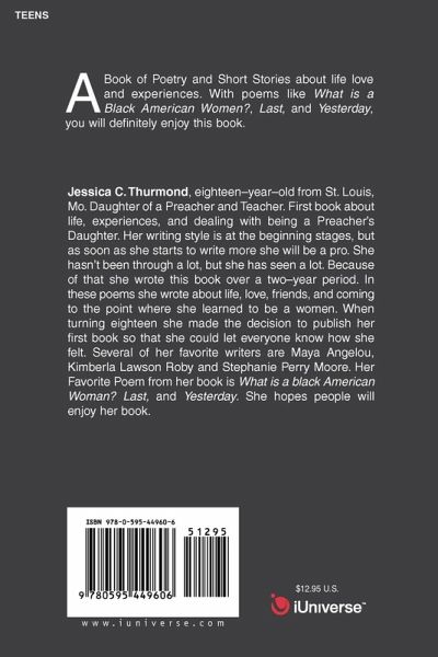 A Book of Poetry and Short Stories about life love and experiences. With poems like What is Black American Women?, Last, and Yesterday, you will definitely enjoy this book.