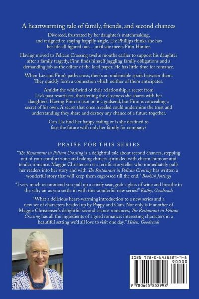 A heartwarming tale of family, friends, and second chances Divorced, frustrated by her daughter's matchmaking, and resigned to staying happily single, Liz Phillips thinks she has her life all figured out... until she meets Finn Hunter. Having moved to Pelican Crossing twelve months earlier to support his daughter after a family tragedy, Finn finds himself juggling family obligations and a demanding job as the editor of the local paper. He has little time for romance. When Liz and Finn's paths cross, there's an undeniable spark between them. They quickly form a connection which neither of them anticipates. Amidst the whirlwind of their relationship, a secret from Liz's past resurfaces, threatening the closeness she shares with her daughters. Having Finn to lean on is a godsend, but Finn is concealing a secret of his own. A secret that once revealed could undermine the trust and understanding they share and destroy any chance of a future together. Can Liz find her happy ending or is she destined to face the future with only her family for company?