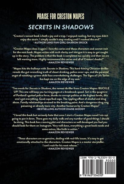 Creston Mapes grew up in northeast Ohio, where he has fond memories of living with his family of five in the upstairs portion of his dad's early American furniture store - The Weathervane Shop. Creston was not a good student, but the one natural talent he possessed was writing. He set type by hand and cranked out his own neighborhood newspaper as a kid, then went on to graduate with a degree in journalism from Bowling Green State University. Creston was a newspaper reporter and photographer in Ohio and Florida, then moved to Atlanta, Georgia, for a job as a creative copywriter. Creston served for a stint as a creative director, but quickly learned he was not cut out for management. He went out on his own as a freelance writer in 1991 and, over the next 30 years, did work for Chick-fil-A, Coca-Cola, The Weather Channel, Oracle, ABC-TV, TNT Sports, colleges and universities, ad agencies, and more. He's ghost-written more than ten non-fiction books. Creston has penned many contemporary thrillers, achieved Amazon Bestseller status multiple times, and had one of his novels (Nobody) optioned as a major motion picture. Creston married his fourth-grade sweetheart, Patty, and they have four amazing adult children. Creston loves his part-time job as an usher at local venues where he gets to see all the latest-greatest concerts and sporting events. He enjoys reading, fishing, thrifting, bocci, painting, bowling, pickleball, time with his family, and dates with his wife. Keep informed of special deals, giveaways, new releases, and exclusive updates from Creston: crestonmapes.com/contact For Creston's eBooks, audiobooks, and paperbacks: amazon.com/author/crestonmapes STAND ALONE THRILLERSCelebrity PastorI Am In HereNobodySIGNS OF LIFE SERIESSigns of LifeLet My Daughter GoI Pick YouCharm ArtistSon & ShieldSecrets in Shadows THE CRITTENDON FILESFear Has a NamePoison TownSky Zone ROCK STAR CHRONICLESDark Star: Confessions of a Rock IdolFull Tilt