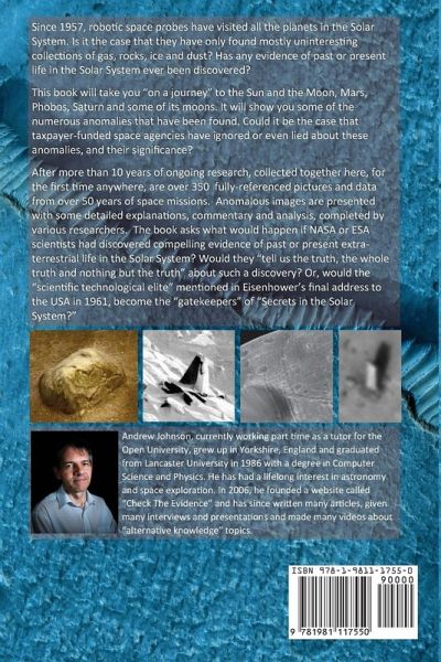 Since 1957, robotic space probes have visited all the planets in the Solar System. Is it the case that they have only found mostly uninteresting collections of gas, rocks, ice and dust? Has any evidence of past or present life in the Solar System ever been discovered? This book will take you "on a journey" to the Sun and the Moon, Mars, Phobos, Saturn and some of its moons. It will show you some of the numerous anomalies that have been found. Could it be the case that taxpayer-funded space agencies have ignored or even lied about these anomalies, and their significance? After more than 10 years of ongoing research, collected together here, for the first time anywhere, are over 350 fully-referenced pictures and data from over 50 years of space missions. Anomalous images are presented with some detailed explanations, commentary and analysis, completed by various researchers. The book asks what would happen if NASA or ESA scientists had discovered compelling evidence of past or present extra-terrestrial life in the Solar System? Would they "tell us the truth, the whole truth and nothing but the truth" about such a discovery? Or, would the "scientific technological elite" mentioned in Eisenhower's final address to the USA in 1961, become the "gatekeepers" of "Secrets in the Solar System?"