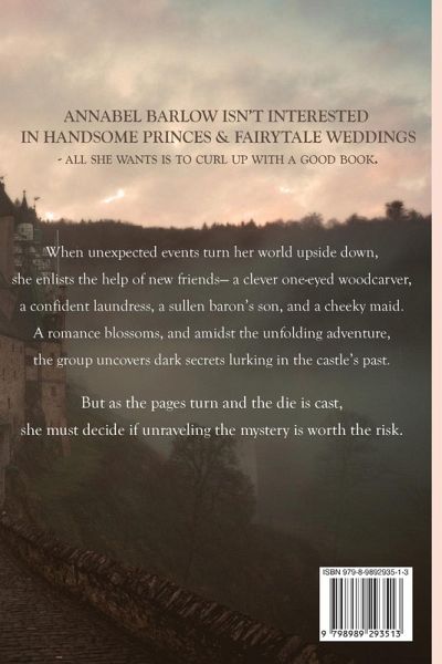 Annabel Barlow isn't interested in handsome princes or fairytale weddings-all she wants is to curl up with a good book. When unexpected events turn her world upside down, she enlists the help of new friends- a clever one-eyed woodcarver, a confident laundress, a sullen baron's son, and a cheeky maid. A romance blossoms, and amidst the unfolding adventure, the group uncovers dark secrets lurking in the castle's past. But as the pages turn and the die is cast, she must decide if unraveling the mystery is worth the risk.