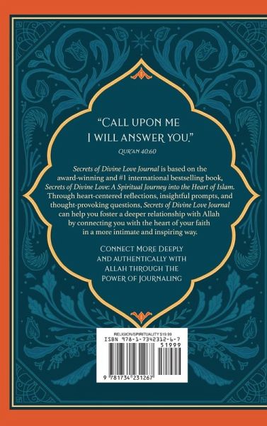 Connect more deeply and authentically with Allah through the power of journaling! The Secrets of Divine Love Journal is based on the award-winning book, Secrets of Divine Love: A Spiritual Journey into the Heart of Islam. Through heart-centered reflections, insightful prompts, and thought-provoking questions, Secrets of Divine Love Journal can help you foster a deeper relationship with Allah by connecting you with the heart of your faith in a more intimate and inspiring way. The Secrets of Divine Love Journal will help you to reflect upon and enjoy your faith from a more holistic perspective. You will learn even more about the pillars, principles, and practices within the Islamic tradition through the Qur'an, hadith, spiritual teaching stories, and sayings from mystics like Imam Ghazali, Ibn Arabi, Rumi and countless others. The Secrets of Divine Love Journal connects you more deeply with Allah through exercises and questions designed to help you:Experience the love of Allah: Discover divine love through inspiring stories, powerful verses from the Qur'an, and sayings of the Prophet Muhammad (pbuh). Connect with your faith: The journal is filled with a 100+ thought-provoking prompts designed to give you the space to feel, reflect and ultimately return to Allah. Transform every moment into prayer: Each journaling session begins and ends with a prayer of gratitude with the intention of allowing you to experience the transformative power of prayer. Create connection with your faith community: The questions and prompts within the journal were written for both private contemplations, to be shared amongst friends or answered in book clubs. Secrets of Divine Love Journal will follow chapter-by-chapter the Secrets of Divine Love book. The journal has additional reflections, stories, and quotes while supplementing each chapter with reflective prompts alongside ample space for the reader to journal. Each chapter of the Secrets of Divine Love Journal starts with a quote from Secrets of Divine Love alongside a verse of the Qur'an followed by a story and reflection, a heart-opening prayer, journal prompts, a quote to contemplate upon, and a closing prayer of gratitude.