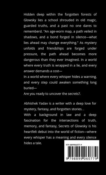 Secrets of Glowsky by Abhishek Yadav is a captivating fantasy mystery novel that transports readers to a world where ancient magic and hidden truths collide. Set against the haunting backdrop of the snow-covered Glowsky train station, this tale follows Roffel Grayson, a young student haunted by vivid dreams of a mysterious woman and a forbidden hut. When Roffel uncovers an old map from a book lost to time, his journey begins-a quest that unravels secrets tied to a magical land and a long-forgotten war.This novel weaves a rich tapestry of suspense, friendship, and destiny. From the eerie depths of a storeroom to the soaring heights of a phoenix-led rescue, Secrets of Glowsky keeps readers on edge, culminating in a bittersweet victory and the promise of more mysteries to come. Perfect for fans of magical adventures and intricate plots, this is the first installment of an enchanting series that leaves you yearning for the next chapter.