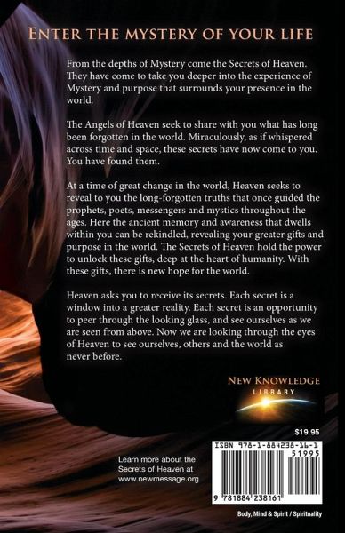 ENTER THE MYSTERY OF YOUR LIFE From the depths of Mystery come the Secrets of Heaven. They have come to take you deeper into the experience of Mystery and purpose that surrounds your presence in the world. The Angels of Heaven seek to share with you what has long been forgotten in the world. Miraculously, as if whispered across time and space, these secrets have now come to you. You have found them. At a time of great change in the world, Heaven seeks to reveal to you the long-forgotten truths that once guided the prophets, poets, messengers and mystics throughout the ages. Here the ancient memory and awareness that dwells within you can be rekindled, revealing your greater gifts and purpose in the world. The Secrets of Heaven hold the power to unlock these gifts, deep at the heart of humanity. With these gifts, there is new hope for the world. Heaven asks you to receive its secrets. Each secret is a window into a greater reality. Each secret is an opportunity to peer through the looking glass, and see ourselves as we are seen from above. Now we are looking through the eyes of Heaven to see ourselves, others and the world as never before. The newest book of revelation from The New Message from God, Secrets of Heaven contains the first and earliest utterances of the New Message from God. These secrets were revealed starting in 1983 in the deserts of the American Southwest, upon the Messenger Marshall Vian Summers' initiation by the Angelic Assembly and their mysterious mandate that he open himself to their presence and begin to "record." What you will find in these pages are those first words, recorded, preserved through time and now made available to the world.