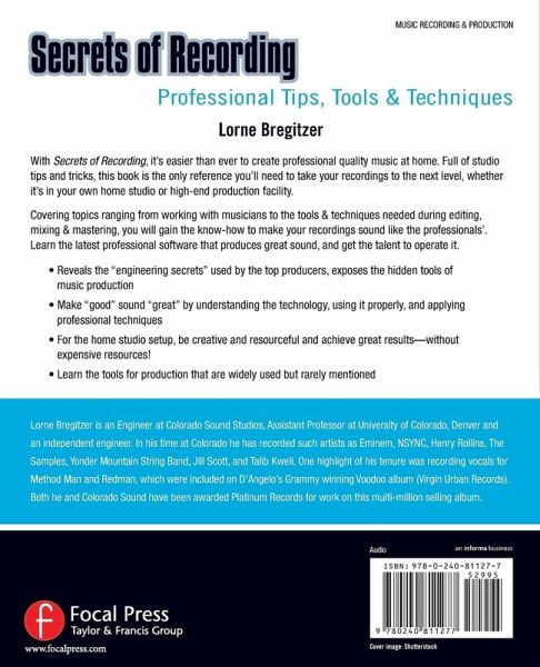 Packed with studio tips and professional tricks and more than 200 illustrations, Secrets of Recording by Lorne Bregitzer makes it easier than ever to create pro-quality music at home. This book is the only reference you will ever need to start producing and engineering your music, or other artists' music, in your own home studio. Covering less than ideal acoustics, solving problems before they occur, tools of the editing phase, and much more, you can gain the knowledge and know-how to make your recordings sound like pro recordings -- understand the technology, use it in the right way and you can make a good recording great.