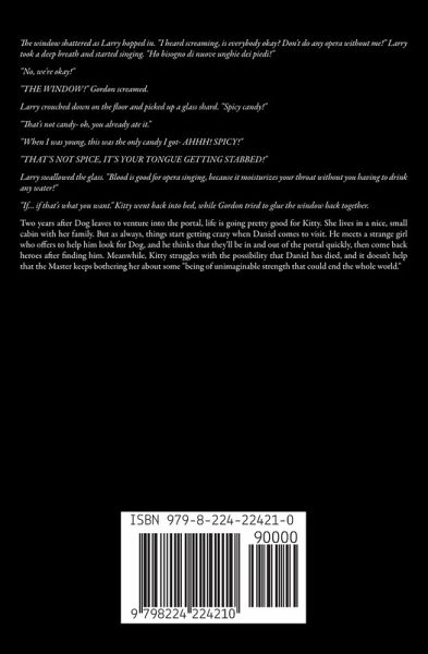 The window shattered as Larry hopped in. "I heard screaming, is everybody okay? Don't do any opera without me!" Larry took a deep breath and started singing. "Ho bisogno di nuove unghie dei piedi!" "No, we're okay!" "THE WINDOW!" Gordon screamed. Larry crouched down on the floor and picked up a glass shard. "Spicy candy!" "That's not candy- oh, you already ate it." "When I was young, this was the only candy I got- AHHH! SPICY!" "THAT'S NOT SPICE, IT'S YOUR TONGUE GETTING STABBED!" Larry swallowed the glass. "Blood is good for opera singing, because it moisturizes your throat without you having to drink any water!" "If... if that's what you want." Kitty went back into bed, while Gordon tried to glue the window back together. Two years after Dog leaves to venture into the portal, life is going pretty good for Kitty. She lives in a nice, small cabin with her family. But as always, things start getting crazy when Daniel comes to visit. He meets a strange girl who offers to help him look for Dog, and he thinks that they'll be in and out of the portal quickly, then come back heroes after finding him. Meanwhile, Kitty struggles with the possibility that Daniel has died, and it doesn't help that the Master keeps bothering her about some "being of unimaginable strength that could end the whole world."