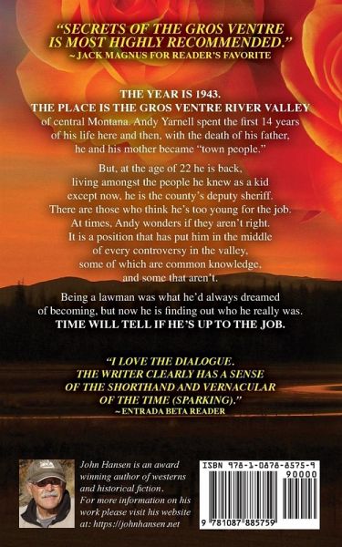 The year is 1943. The place is the Gros Ventre river valley of central Montana. Andy Yarnell spent the first 14 years of his life here and then, with the death of his father, he and his mother became "town people." But now, at the age of 22 he is back, living amongst the people he knew as a kid except now, he is the county's deputy sheriff. There are those who think he's too young for the job. At times, Andy wonders if they aren't right. It is a position that has put him in the middle of every controversy in the valley, some of which are common knowledge, and some that aren't. Being a lawman was what he'd always dreamed of becoming, but now he is finding out who he really was. Time will tell if he's up to the job.
