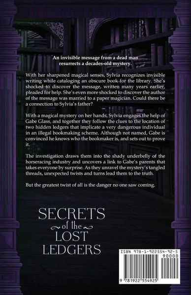 An invisible message from a dead man resurrects a decades-old mystery. With her sharpened magical senses, Sylvia recognizes invisible writing while cataloging an obscure book for the library. She's shocked to discover the message, written many years earlier, pleaded for help. She's even more shocked to discover the author of the message was married to a paper magician. Could there be a connection to Sylvia's father? With a magical mystery on her hands, Sylvia engages the help of Gabe Glass, and together they follow the clues to the location of two hidden ledgers that implicate a very dangerous individual in an illegal bookmaking scheme. Although not named, Gabe is convinced he knows who the bookmaker is, and sets out to prove it. The investigation draws them into the shady underbelly of the horseracing industry and uncovers a link to Gabe's parents that takes everyone by surprise. As they unravel the mystery's tangled threads, unexpected twists and turns lead them to the truth. But the greatest twist of all is the danger no one saw coming.