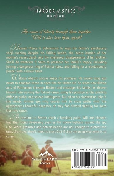 The cause of liberty brought them together. Will it also tear them apart? Hannah Pierce is determined to keep her father's apothecary shop running, despite his failing health, the heavy burden of her mother's recent death, and the mysterious disappearance of her brother. She'll do whatever it takes to preserve her family's legacy, including joining a dangerous ring of patriot spies...and falling for a revolutionary printer with a brave heart. William Abbott always keeps his promises. He vowed long ago to never abandon those in need like his father did. So when new British acts of Parliament threaten Boston and endanger his family, he throws himself into serving the Patriot cause, using his position at the printing office to gather and spread intelligence. But when his clandestine role in the newly formed spy ring causes him to cross paths with the apothecary's beautiful daughter, he may find himself fighting for more than the cause. As tensions in Boston reach a breaking point, Will and Hannah find their bond deepening even as the noose tightens around the spy ring. When promises and determination are not enough to protect the ones they love, they'll need to trust God if they are to survive what is to come.