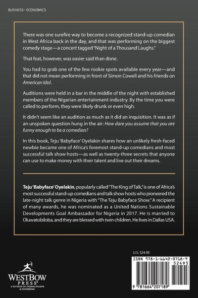 There was one surefire way to become a recognized stand-up comedian in West Africa back in the day, and that was performing on the biggest comedy stage-a concert tagged "Night of a Thousand Laughs." That feat, however, was easier said than done. You had to grab one of the few rookie spots available every year-and that did not mean performing in front of Simon Cowell and his friends on American Idol. Auditions were held in a bar in the middle of the night with established members of the Nigerian entertainment industry. By the time you were called to perform, they were likely drunk or even high. It didn't seem like an audition as much as it did an inquisition. It was as if an unspoken question hung in the air: How dare you assume that you are funny enough to be a comedian? In this book, Teju 'Babyface' Oyelakin shares how an unlikely fresh-faced newbie became one of Africa's foremost stand-up comedians and most successful talk show hosts-as well as twenty-three secrets that anyone can use to make money with their talent and live out their dreams.