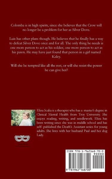 Colomba is in high spirits, since she believes that the Crow will no longer be a problem for her as Silver Dove. Luis has other plans though. He believes that he finally has a way to defeat Silver Dove once and for all. The only thing he needs is one more person to act as his soldier, one more person to act as his pawn. He may have just found that person in a girl named Kaley. Will she be tempted like all the rest, or will she resist the power he can give her?