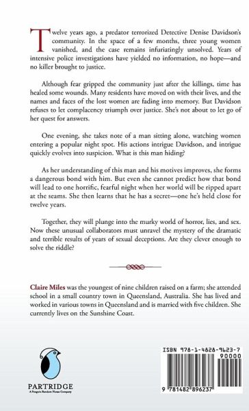 Twelve years ago, a predator terrorized Detective Denise Davidson's community. In the space of a few months, three young women vanished, and the case remains infuriatingly unsolved. Years of intensive police investigations have yielded no information, no hope-and no killer brought to justice. Although fear gripped the community just after the killings, time has healed some wounds. Many residents have moved on with their lives, and the names and faces of the lost women are fading into memory. But Davidson refuses to let complacency triumph over justice. She's not about to let go of her quest for answers. One evening, she takes note of a man sitting alone, watching women entering a popular night spot. His actions intrigue Davidson, and intrigue quickly evolves into suspicion. What is this man hiding? As her understanding of this man and his motives improves, she forms a dangerous bond with him. But even she cannot predict how that bond will lead to one horrific, fearful night when her world will be ripped apart at the seams. She then learns that he has a secret-one he's held close for twelve years. Together, they will plunge into the murky world of horror, lies, and sex. Now these unusual collaborators must unravel the mystery of the dramatic and terrible results of years of sexual deceptions. Are they clever enough to solve the riddle?