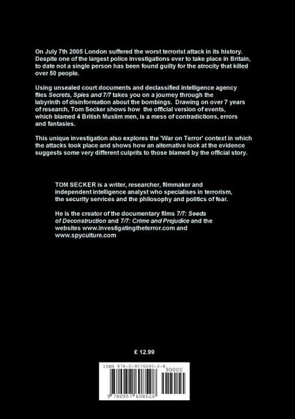 On July 7th 2005 London suffered the worst terrorist attack in its history. Despite one of the largest police investigations ever to take place in Britain, to date not a single person has been found guilty for the atrocity that killed over 50 people. Using unsealed court documents and declassified intelligence agency files Secrets, Spies and 7/7 takes you on a journey through the labyrinth of disinformation about the bombings. Drawing on over 7 years of research, Tom Secker shows how the official version of events, which blamed 4 British Muslim men, is a mess of contradictions, errors and fantasies. This unique investigation also explores the 'War on Terror' context in which the attacks took place and shows how an alternative look at the evidence suggests some very different culprits to those blamed by the official story.