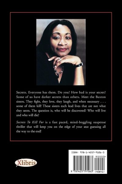 Secrets. Everyone has them. Do you? How bad is your secret? Some of us have darker secrets than others. Meet the Baxton sisters: Patricia, Regina, Deidra, CeCe, and Sherilyn. They fight, they love, they laugh, and when necessary...some of them kill! These sisters each lead lives that are not what they seem. The question is, who will be discovered? Who will live and who will die? Secrets To Kill For is a fast paced, mind-boggling suspense thriller that will keep you on the edge of your seat guessing all the way to the end!