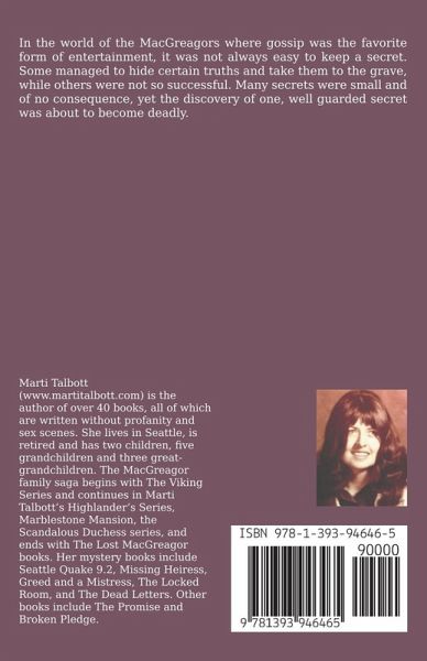 In the world of the MacGreagors where gossip was the favorite form of entertainment, it was not always easy to keep a secret. Some managed to hide certain truths and take them to the grave, while others were not so successful. Many secrets were small and of no consequence, yet the discovery of one, well guarded secret was about to become deadly.