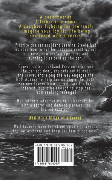 A dead mother. A father in a coma. A daughter fighting for the truth. Imagine your idyllic life being shattered with a secret. Prior to the car accident Jasmine Steele had no idea how to run her father's construction business, now she's stepped up and running it as best as she can. Convinced her husband Preston is behind the accident, she sets out to even the score, and along the way engages the Holt Agency to help untangle the truth. Her new lawyer-Nicolas-will spark a love interest, but is he enough to stop her from seeking revenge? Her father's adversaries will blindside her with a secret and demand payment for his indiscretion. And it's a killer of a secret. Will Jasmine have the street smarts to avenge the car accident and keep the family business? SECRETS is Book 1 in the JASMINE STEELE THRILLER SERIES. If you like thrillers with twists and turns, interwoven secrets, and a dash of romance, you'll love this killer first book in the series. The series is best read in order because of the continuing storyline. Book 1: SECRETS Book 2: VENGEFUL Book 3: RUTHLESS Book 4: RELENTLESS