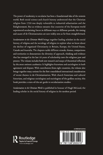 Secularisation in the Christian World brings together leading scholars in the social history of religion and the sociology of religion to explore what we know about the decline of organised Christianity in Britain, Europe, the United States, Canada and Australia. With contributors from eight countries, the volume also brings together many nations for the first consolidated international consideration of recent themes in de-Christianisation.