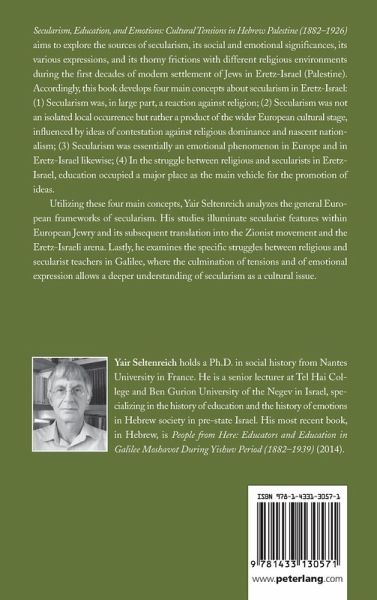 Utilizing these four main concepts, Yair Seltenreich analyzes the general European frameworks of secularism. His studies illuminate secularist features within European Jewry and its subsequent translation into the Zionist movement and the Eretz-Israeli arena. Lastly, he examines the specific struggles between religious and secularist teachers in Galilee, where the culmination of tensions and of emotional expression allows a deeper understanding of secularism as a cultural issue.