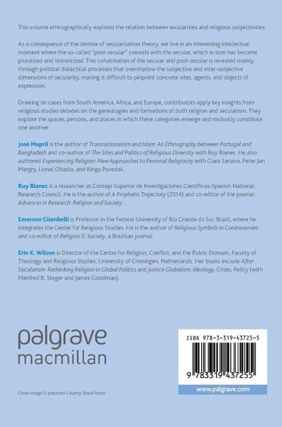 This volume ethnographically explores the relation between secularities and religious subjectivities.As a consequence of the demise of secularization theory, we live in an interesting intellectual moment where the so-called 'post-secular' coexists with the secular, which in turn has become pluralized and historicized. This cohabitation of the secular and post-secular is revealed mainly through political dialectical processes that overshadow the subjective and inter-subjective dimensions of secularity, making it difficult to pinpoint concrete sites, agents, and objects of expression. Drawing on cases from South America, Africa, and Europe, contributors apply key insights from religious studies debates on the genealogies and formations of both religion and secularism. They explore the spaces, persons, and places in which these categories emerge and mutually constitute one another.