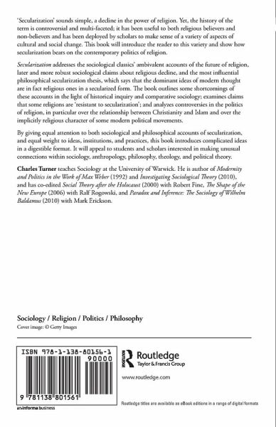 Secularization addresses the sociological classicsâ ambivalent accounts of the future of religion, later and more robust sociological claims about religious decline, and the most influential philosophical secularization thesis, which says that the dominant ideas of modern thought are in fact religious ones in a secularized form.