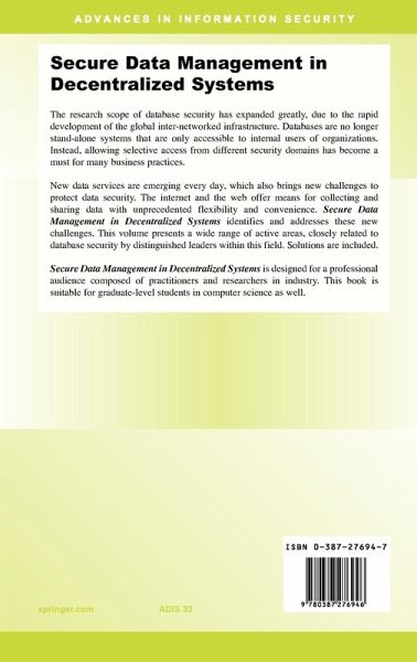 "Secure data management in decentralized systems is addressed in this book. ... This book should appeal to researchers and graduate students who want to acquire in-depth knowledge of information security and its extension to distributed database systems. After reading the book closely, one will have a better understanding of the new set of issues and the complexity of securing distributed data in emerging environments." (Jean-Pierre Kuilboer, ACM Computing Reviews, Vol. 49 (4), April, 2008)