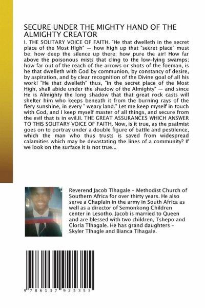 I. THE SOLITARY VOICE OF FAITH. "He that dwelleth in the secret place of the Most High" - how high up that "secret place" must be; how deep the silence up there; how pure the air! How far above the poisonous mists that cling to the low-lying swamps; how far out of the reach of the arrows or shots of the foeman, is he that dwelleth with God by communion, by constancy of desire, by aspiration, and by clear recognition of the Divine goal of all his work! "He that dwelleth" thus, "in the secret place of the Most High, shall abide under the shadow of the Almighty" - and since He is Almighty the long shadow that that great rock casts will shelter him who keeps beneath it from the burning rays of the fiery sunshine, in every " weary land." Let me keep myself in touch with God, and I keep myself master of all things, and secure from the evil that is in evil.II. THE GREAT ASSURANCES WHICH ANSWER TO THIS SOLITARY VOICE OF FAITH. Now, is it true, as the psalmist goes on to portray under a double figure of battle and pestilence, which the man who thus trusts is saved from widespread calamities which may be devastating the lines of a community? If we look on the surface it is not true...