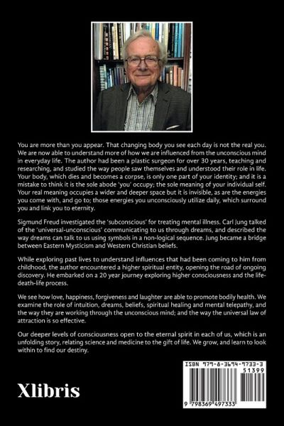 You are more than you appear. That changing body you see each day is not the real you. We are now able to understand more of how we are influenced from the unconscious mind in everyday life. The author had been a plastic surgeon for over 30 years, teaching and researching, and studied the way people saw themselves and understood their role in life. Your body, which dies and becomes a corpse, is only one part of your identity; and it is a mistake to think it is the sole abode 'you' occupy; the sole meaning of your individual self. Your real meaning occupies a wider and deeper space but it is invisible, as are the energies you come with, and go to; those energies you unconsciously utilize daily, which surround you and link you to eternity. Sigmund Freud investigated the 'subconscious' for treating mental illness. Carl Jung talked of the 'universal-unconscious' communicating to us through dreams, and described the way dreams can talk to us using symbols in a non-logical sequence. Jung became a bridge between Eastern Mysticism and Western Christian beliefs. While exploring past lives to understand influences that had been coming to him from childhood, the author encountered a higher spiritual entity, opening the road of ongoing discovery. He embarked on a 20 year journey exploring higher consciousness and the life-death-life process. We see how love, happiness, forgiveness and laughter are able to promote bodily health. We examine the role of intuition, dreams, beliefs, spiritual healing and mental telepathy, and the way they are working through the unconscious mind; and the way the universal law of attraction is so effective. Our deeper levels of consciousness open to the eternal spirit in each of us, which is an unfolding story, relating science and medicine to the gift of life. We grow, and learn to look within to find our destiny.