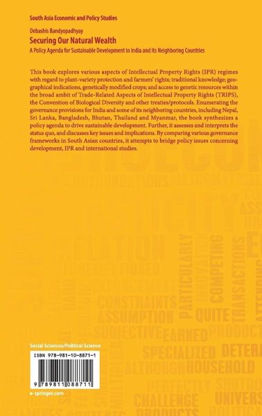 This book explores various aspects of Intellectual Property Rights (IPR) regimes with regard to plant-variety protection and farmers' rights; traditional knowledge; geographical indications, genetically modified crops; and access to genetic resources within the broad ambit of Trade-Related Aspects of Intellectual Property Rights (TRIPS), the Convention of Biological Diversity and other treaties/protocols. Enumerating the governance provisions for India and some of its neighboring countries, including Nepal, Sri Lanka, Bangladesh, Bhutan, Thailand and Myanmar, the book synthesizes a policy agenda to drive sustainable development. Further, it assesses and interprets the status quo, and discusses key issues and implications. By comparing various governance frameworks in South Asian countries, it attempts to bridge policy issues concerning development, IPR and international studies.