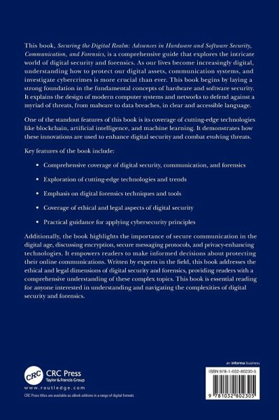 This book "Securing the Digital Realm: Advances in Hardware and Software Security, Communication, and Forensics" is a comprehensive guide that explores the intricate world of digital security and forensics.
