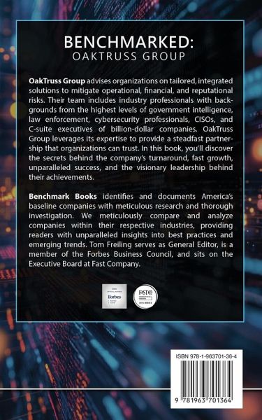 OakTruss Group simplifies security risks to help businesses better protect themselves, their operations, and their valuable assets. They are passionate about helping companies build a culture of security, with a team of industry professionals from the highest levels of government intelligence and law enforcement communities, former CISOs, cybersecurity professionals, and C-suite executives of billion-dollar companies. In this book, you'll discover the secrets behind the company's turnaround, fast growth, and unparalleled success, and the visionary leadership behind their achievements. Benchmark Books identifies and documents America's baseline companies with meticulous research and thorough investigation. We meticulously compare and analyze companies within their respective industries, providing readers with unparalleled insights into best practices and emerging trends. Tom Freiling serves as General Editor, is a member of the Forbes Business Council, and sits on the Executive Board at Fast Company.