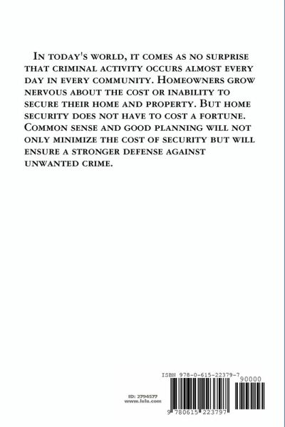 Have you ever wanted to increase the protection of your home from criminal activity, but couldn't afford the cost of an expensive alarm system? Here is a guide to securing your home or property without having to pay a fortune. In this short book, you will learn how to better use the resources that you already have and minimize the cost of security equipment. You will be guided through a risk assessment survey that will help you to determine what you really need. Don't let high prices keep you from Securing Your Home.
