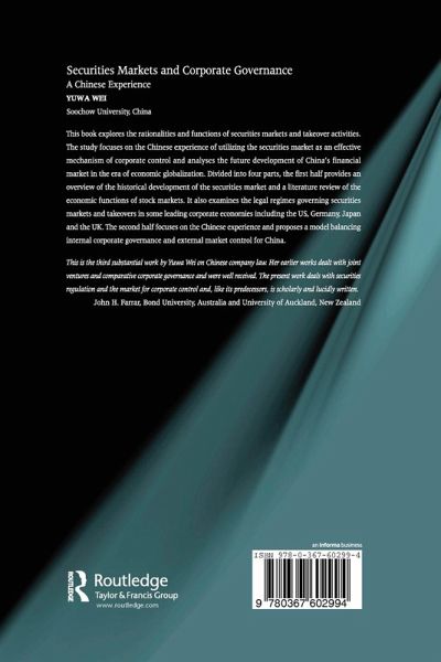 This book explores the rationalities and functions of securities markets and takeover activities. Focusing on the Chinese experience of utilizing the securities market as an effective mechanism of corporate control, this volume analyses the future development of China's financial market in the era of economic globalization. Providing an overview of the historical development of the securities market and a literature review of the economic functions of stock markets, Securities Markets and Corporate Governance also examines the legal regimes governing securities markets and takeovers in some leading corporate economies including the US, Germany, Japan and the UK. This volume then focuses on the Chinese experience, proposing a model which balances internal corporate governance and external market control for China.